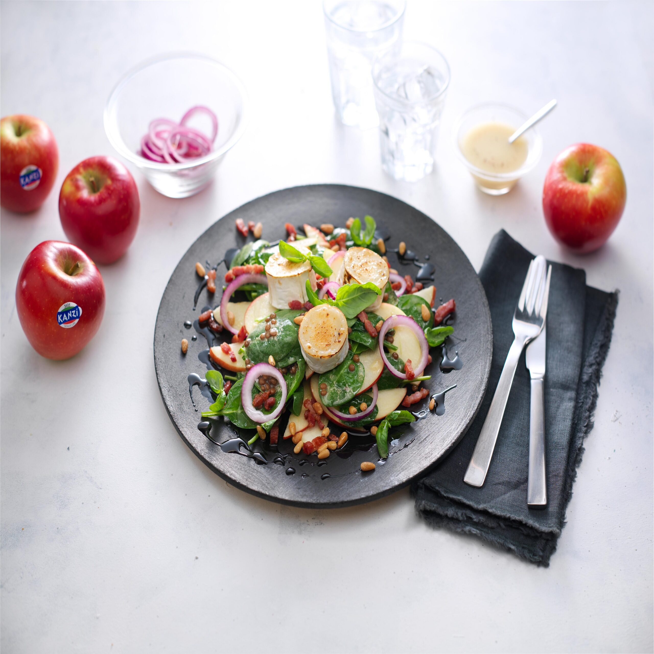 ĀBOLU UN SPINĀTU SALĀTI UN SILTS KAZAS SIERS