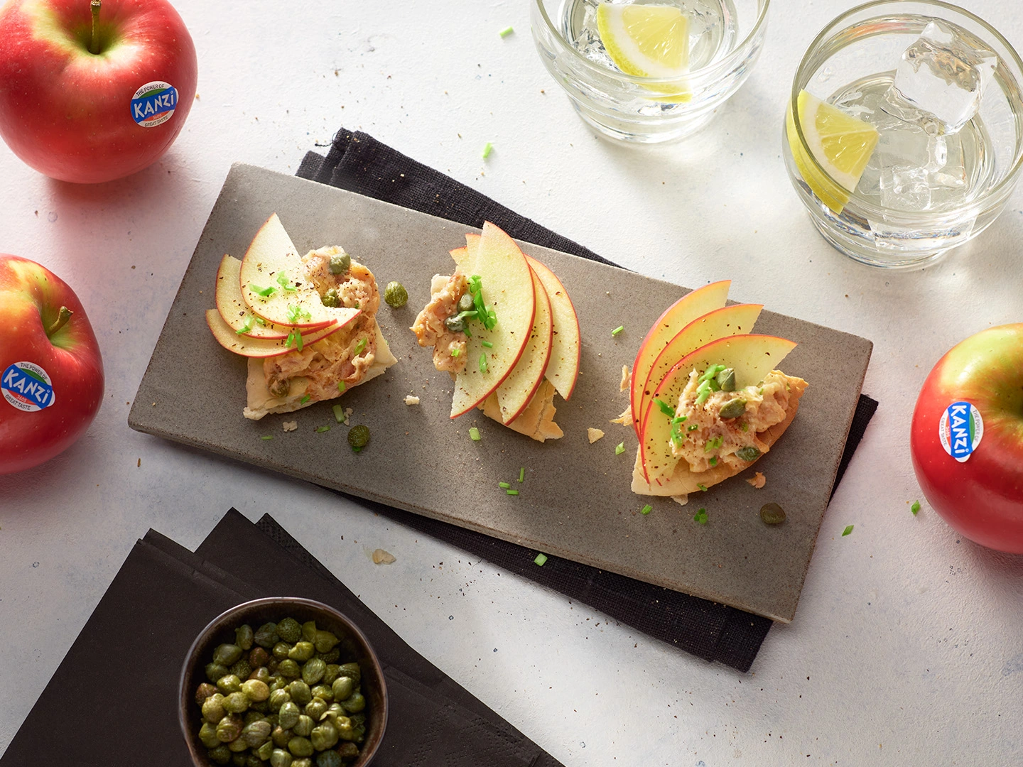 Smoky smoked mackerel meets crunchy KANZI® apple slices in a salad that’s all about contrast — creamy mayonnaise and bright capers balancing the richness of the fish, with shallots and chives adding delicate bite. Toasty pita wedges complete the picture, bringing crunch and warmth. Perfect for sharing, starring at brunch, or lifting up a simple lunch with layers of texture and flavour that dance together. Simple to make, delightful to eat.
